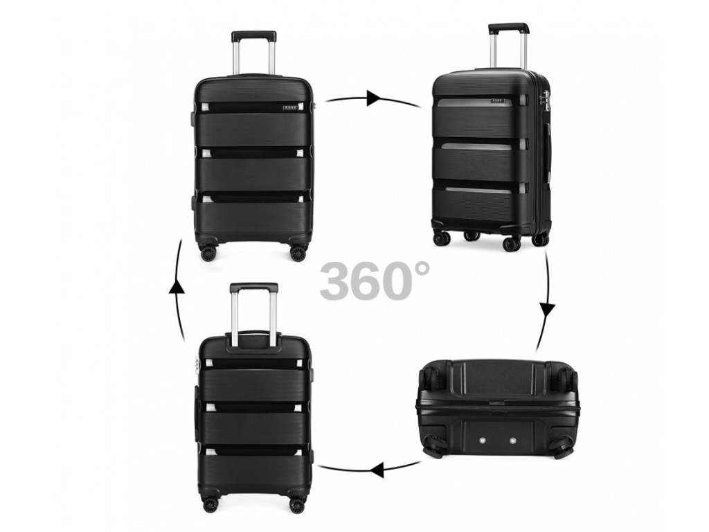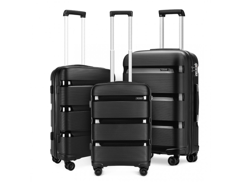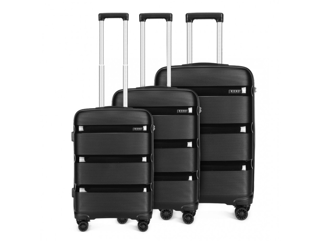 Kono K2092L Sada 3 kufrů 55cm 65cm 76cm spinner Černý Polypropylen