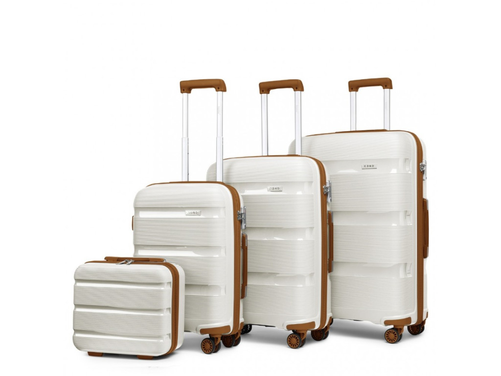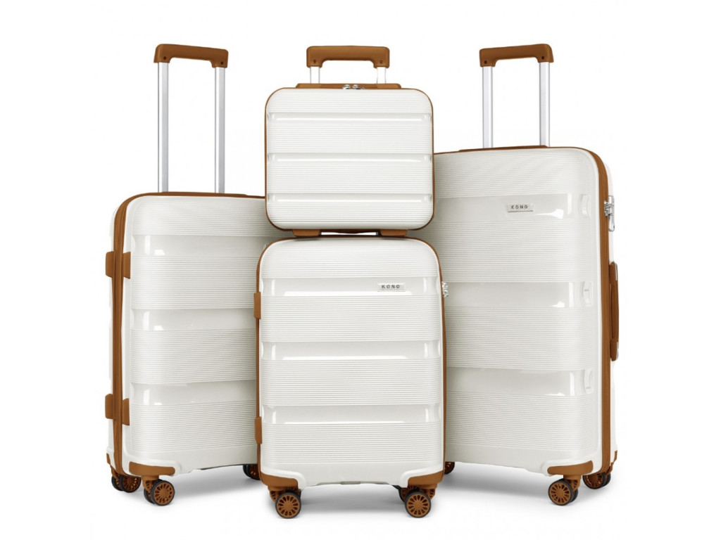 Kono K2092L Sada 4 kufrů 31/55/65/76cm spinner Krémový Polypropylen