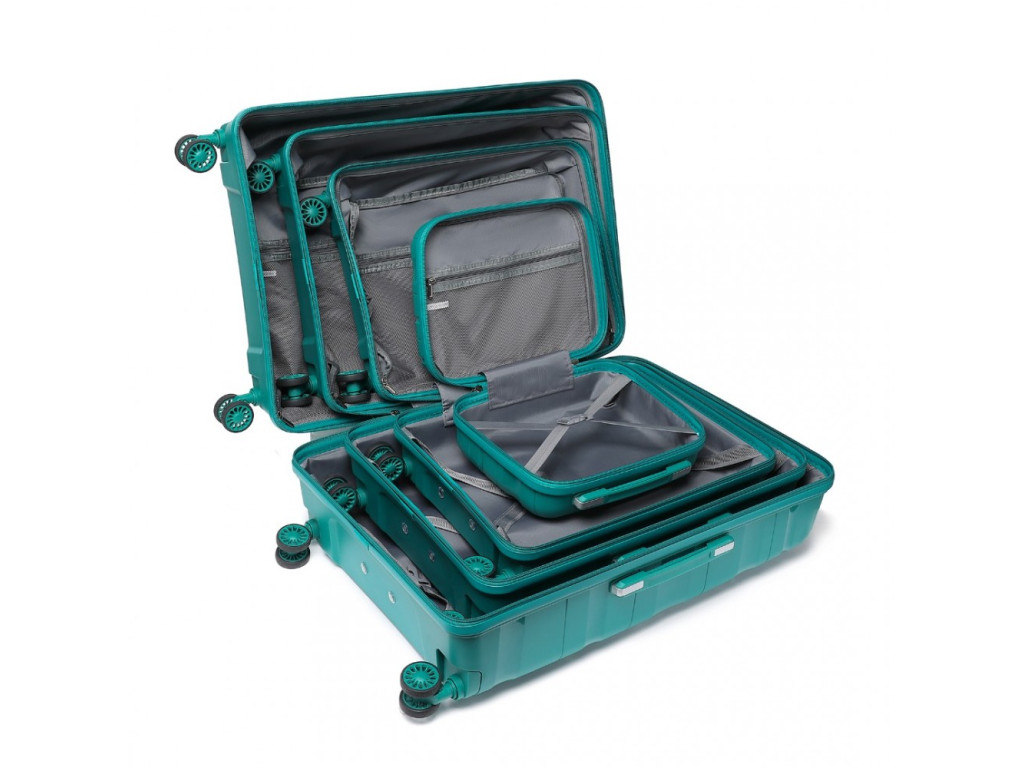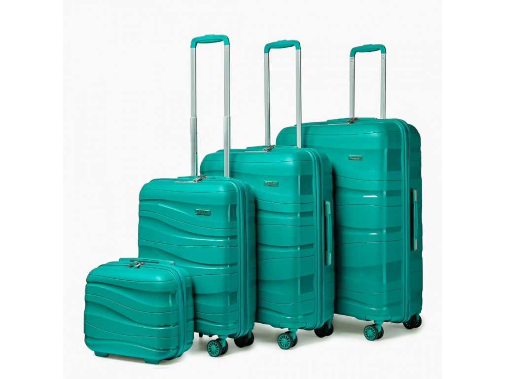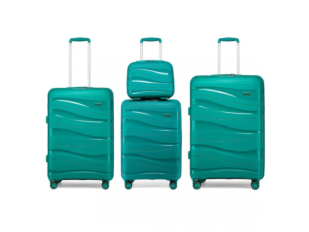 Kono K2094L Sada kufrů 4ks spinner 30cm 55cm 66cm 76cm Modrozelený Polypropylen