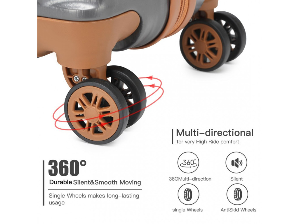 Vyroben z ABS s tichými dvojitými kolečky, hliníkovou výsuvnou rukojetí nebo TSA číselným zámkem. ABS materiál nabízí odolnost proti poškrábání a je vhodný do nízkých teplot. ABS materiál není tolik pružný jako polypropylen ale pro občasné cesty je plně dostačující.