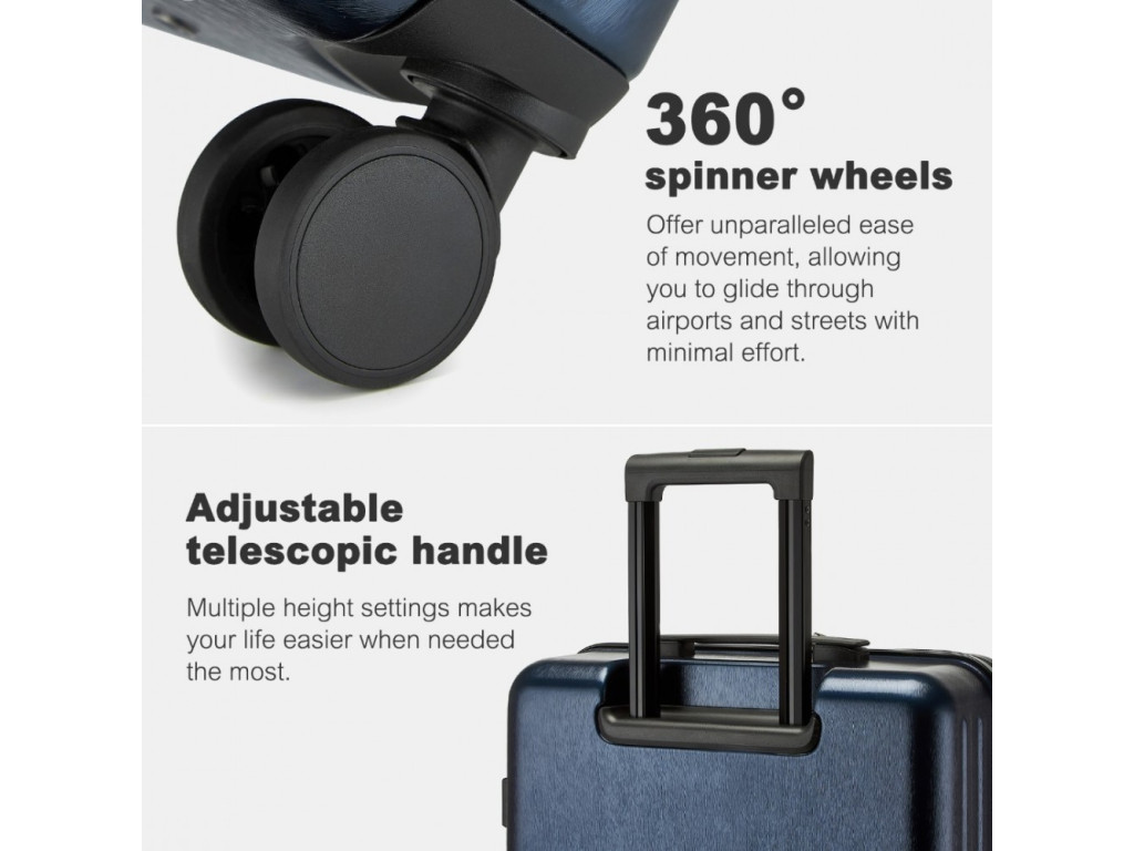 Kufry jsou vyrobeny z materiálu ABS/Polykarbonát s hliníkovou výsuvnou rukojetí a TSA číselným zámkem. ABS/Polykarbonát je pevný materiál, nabízí odolnost proti poškrábání a je vhodný do nízkých teplot. Tento materiál není tolik pružný jako polypropylen, ale pro nenáročné cesty je plně dostačující.