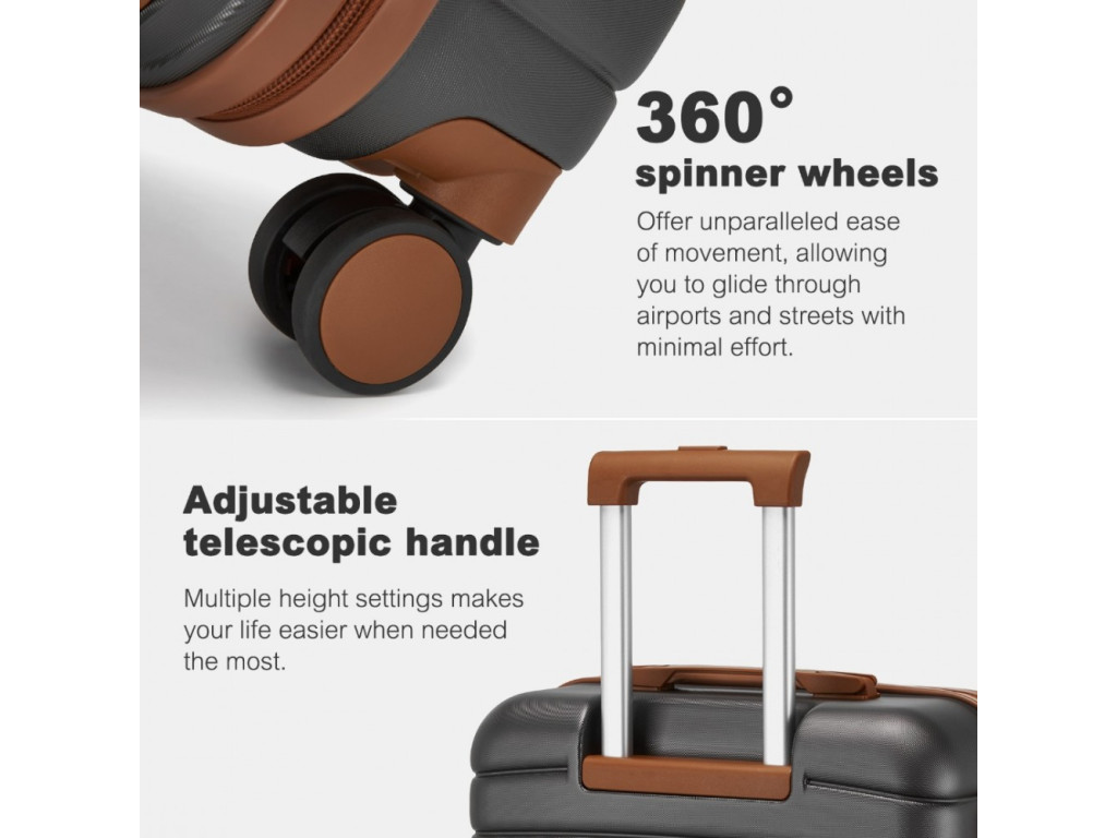 Kufry Kono jsou vyráběny z ABS a polykarbonátu (PC), někdy také z polypropylenu. Mají tichá dvojitá spinner kolečka a hliníkovou výsuvnou rukojeť. ABS materiál je ceněn pro svou odolnost proti poškrábání a výkon v nízkých teplotách. Ačkoli není tak pružný jako polypropylen, pro běžné či příležitostné cesty poskytuje plně dostatečnou ochranu a dlouhodobé užívání.