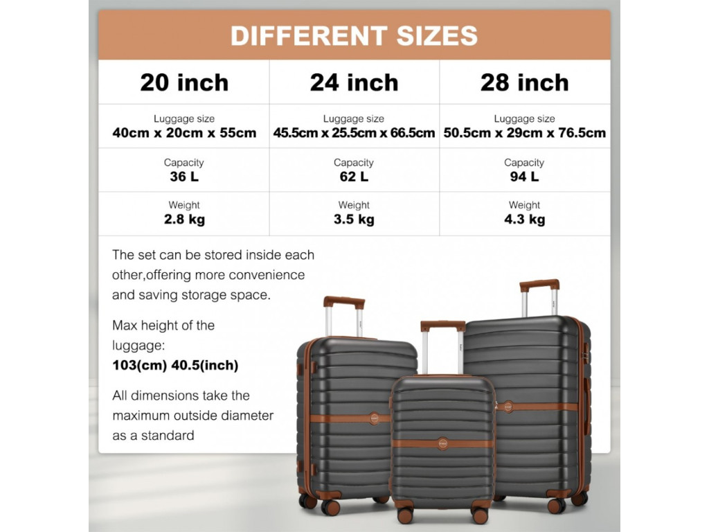 Kono 2592 Sada 3 kufrů Spinner 55/65/75cm Šedá ABS/Polykarbonát
