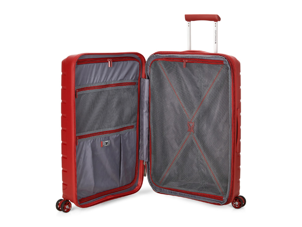 Uvnitř kufru Roncato B-Flying najdete promyšleně rozvržené prostory, disponující dvěma velkými přihrádkami na zip, které vám umožní oddělit různé typy oblečení či osobní předměty.