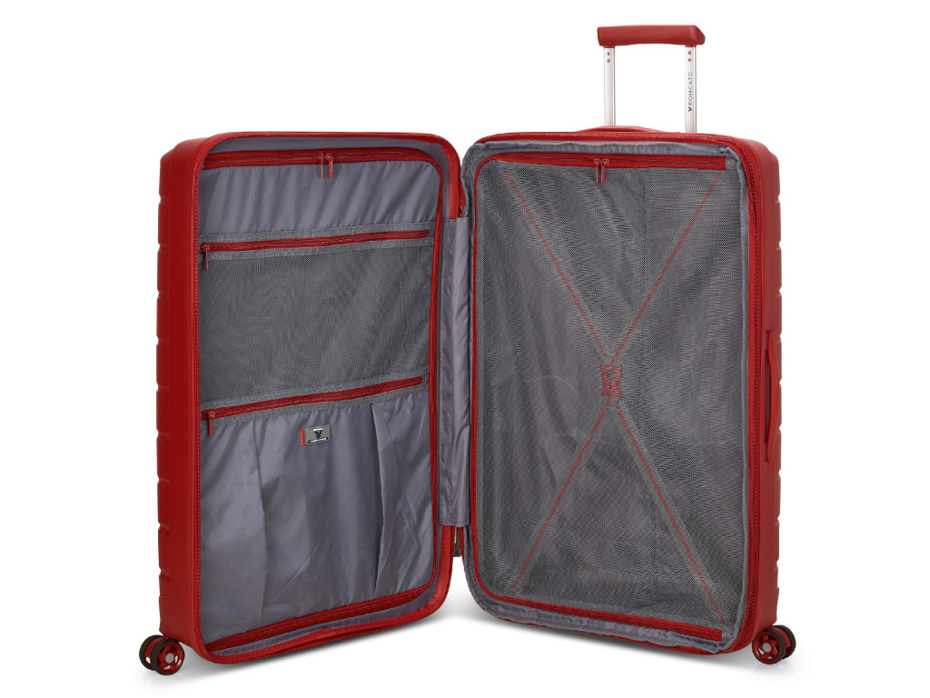 Uvnitř kufru Roncato B-Flying najdete promyšleně rozvržené prostory, disponující dvěma velkými přihrádkami na zip, které vám umožní oddělit různé typy oblečení či osobní předměty.