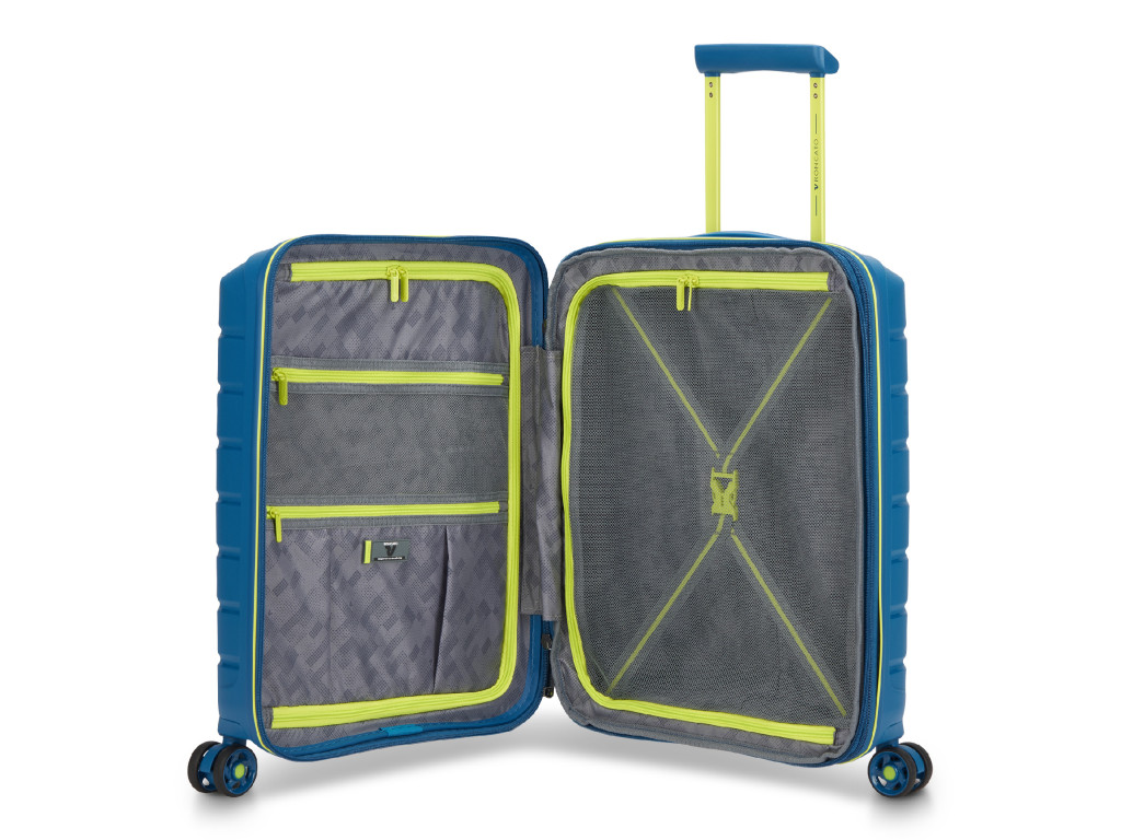 Uvnitř kufru Roncato B-Flying najdete promyšleně rozvržené prostory, disponující dvěma velkými přihrádkami na zip, které vám umožní oddělit různé typy oblečení či osobní předměty.