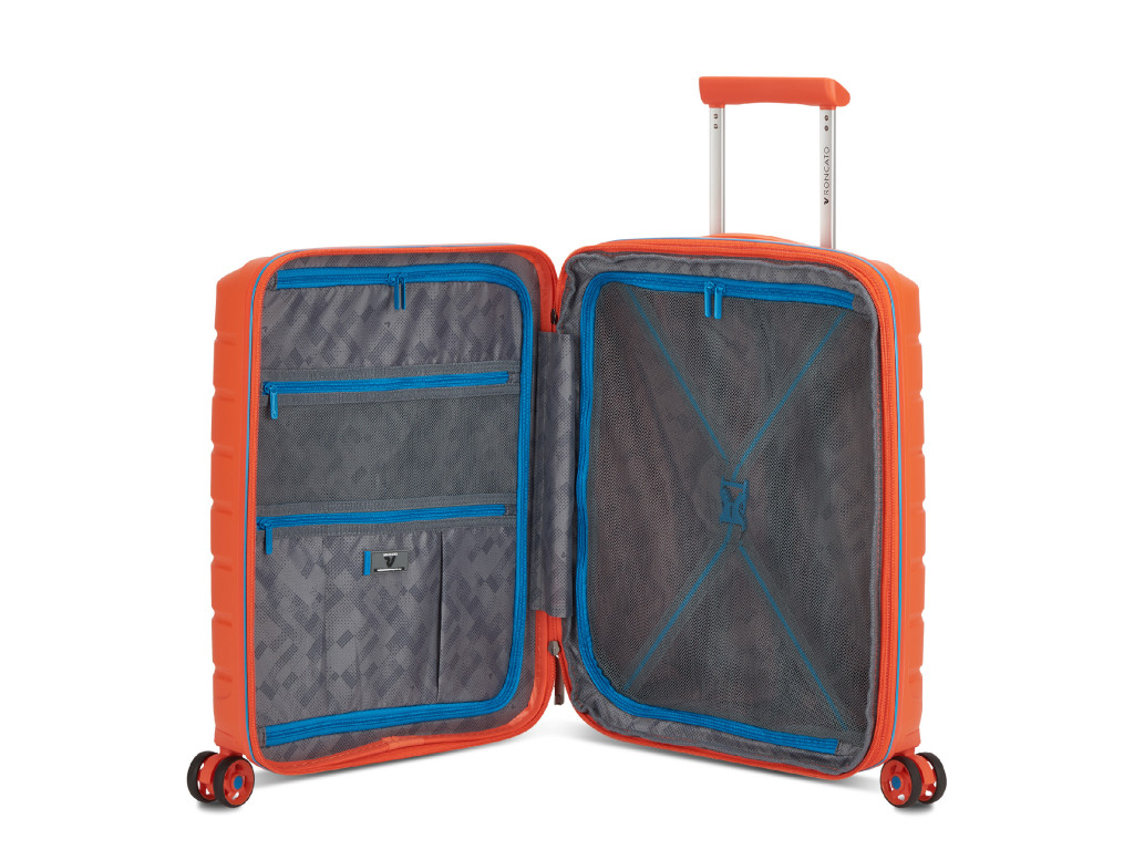 Uvnitř kufru Roncato B-Flying najdete promyšleně rozvržené prostory, disponující dvěma velkými přihrádkami na zip, které vám umožní oddělit různé typy oblečení či osobní předměty.