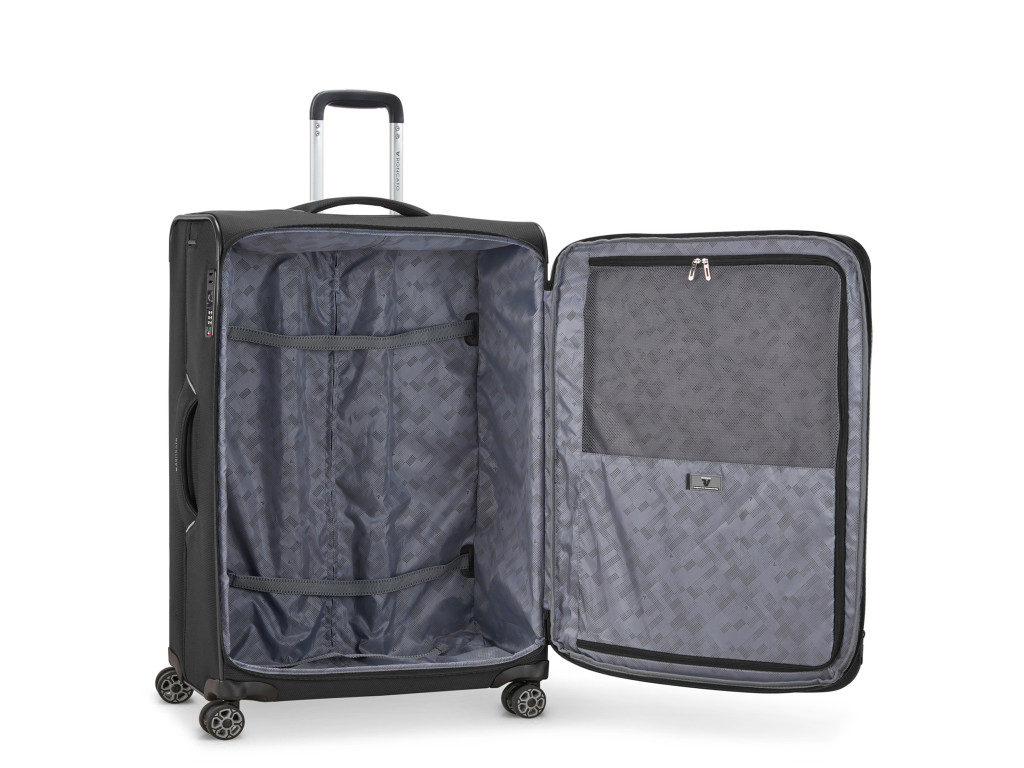 Vnitřek kufru je vybaven stahovacími popruhy, velkou kapsou na zip. Rovněž disponuje rozšiřovacím zipem, díky kterému můžete kufr jednoduše a rychle rozšířit a získat tak další prostor.