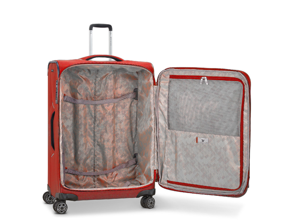 Vnitřek kufru je vybaven stahovacími popruhy, velkou kapsou na zip. Rovněž disponuje rozšiřovacím zipem, díky kterému můžete kufr jednoduše a rychle rozšířit a získat tak další prostor.