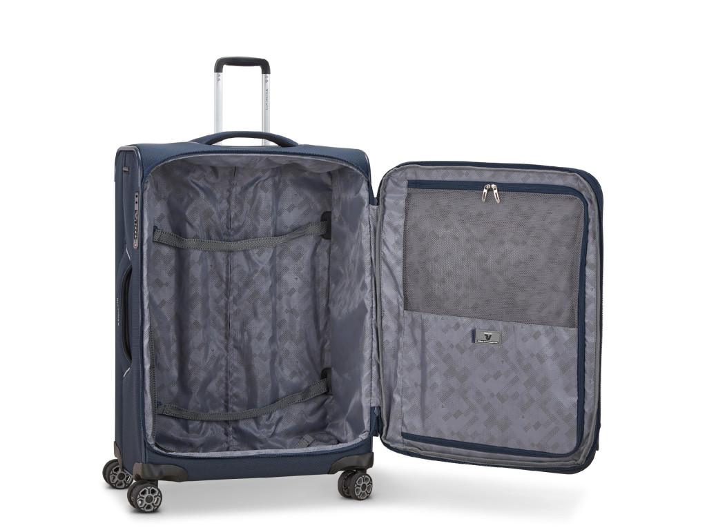 Vnitřek kufru je vybaven stahovacími popruhy, velkou kapsou na zip. Rovněž disponuje rozšiřovacím zipem, díky kterému můžete kufr jednoduše a rychle rozšířit a získat tak další prostor.