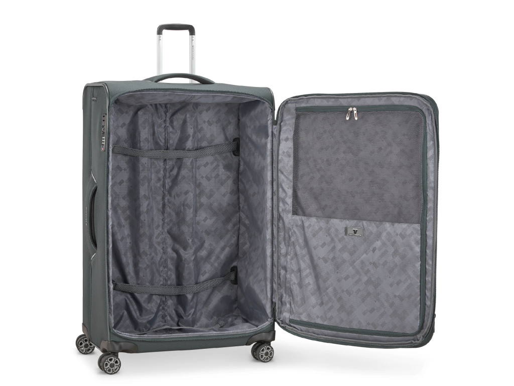 Vnitřek kufru je vybaven stahovacími popruhy, velkou kapsou na zip. Rovněž disponuje rozšiřovacím zipem, díky kterému můžete kufr jednoduše a rychle rozšířit a získat tak další prostor.
