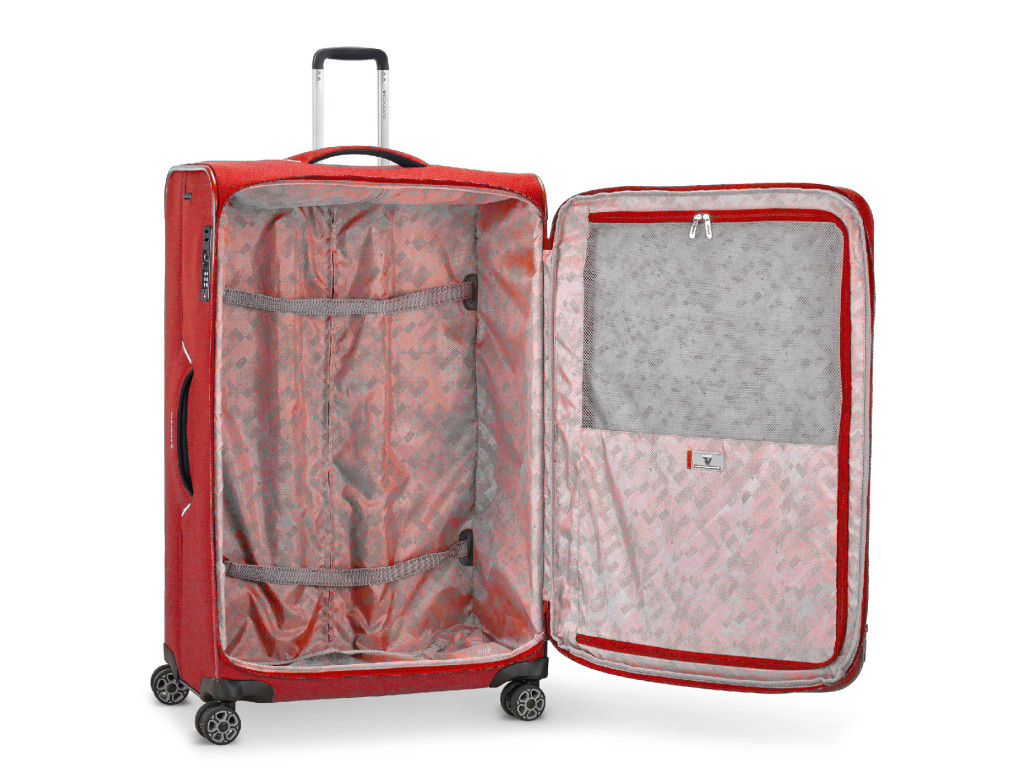Vnitřek kufru je vybaven stahovacími popruhy, velkou kapsou na zip. Rovněž disponuje rozšiřovacím zipem, díky kterému můžete kufr jednoduše a rychle rozšířit a získat tak další prostor.