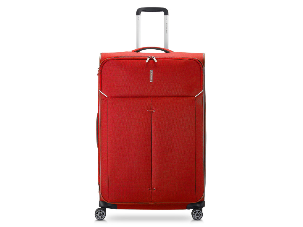 Elegantní a sportovně laděný přední panel s ozdobnými prvky, vnější kapsou na zip pro uložení příručních věcí a kovové logo dodává kufru luxusní styl, který oceníte při každé cestě.