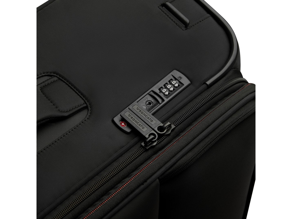Kufr je vyroben z odolného nylon polyesteru, který zajišťuje nízkou hmotnost a dlouhou životnost.