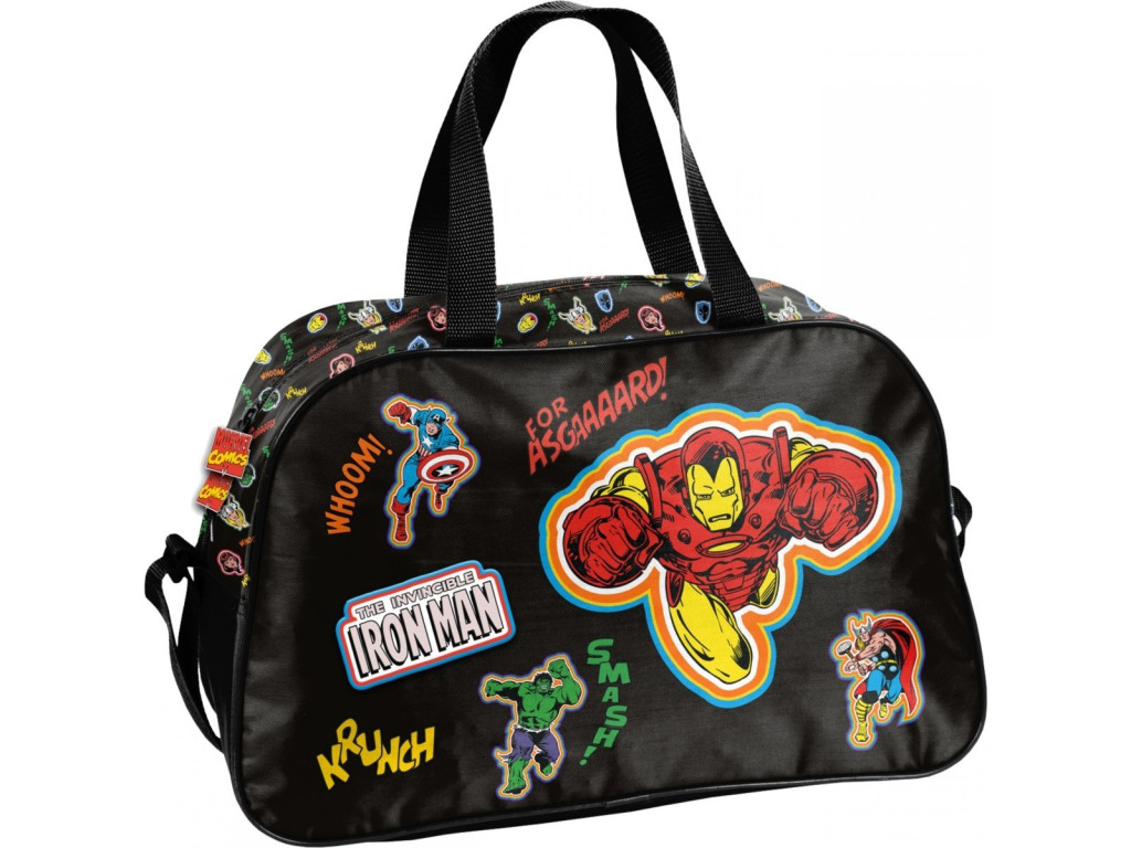 Sportovní taška Avengers. Ideální na bazén a další sportovní aktivity. Skvěle se hodí i na víkendové či prázdninové výlety. Taška má jednu prostornou přihrádku, zapíná se na dvoucestný zip s ozdobným táhlem. Model je vybaven vyztuženým dnem, dvěma pohodlnými uchy na přenášení a nastavitelným ramenním popruhem.