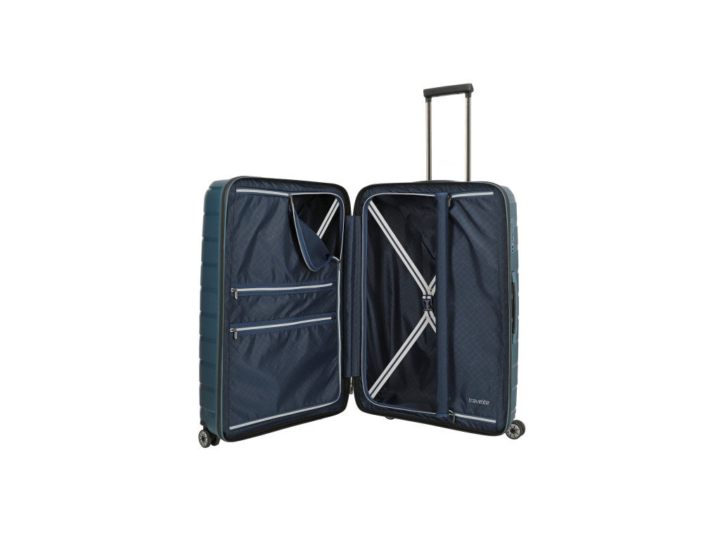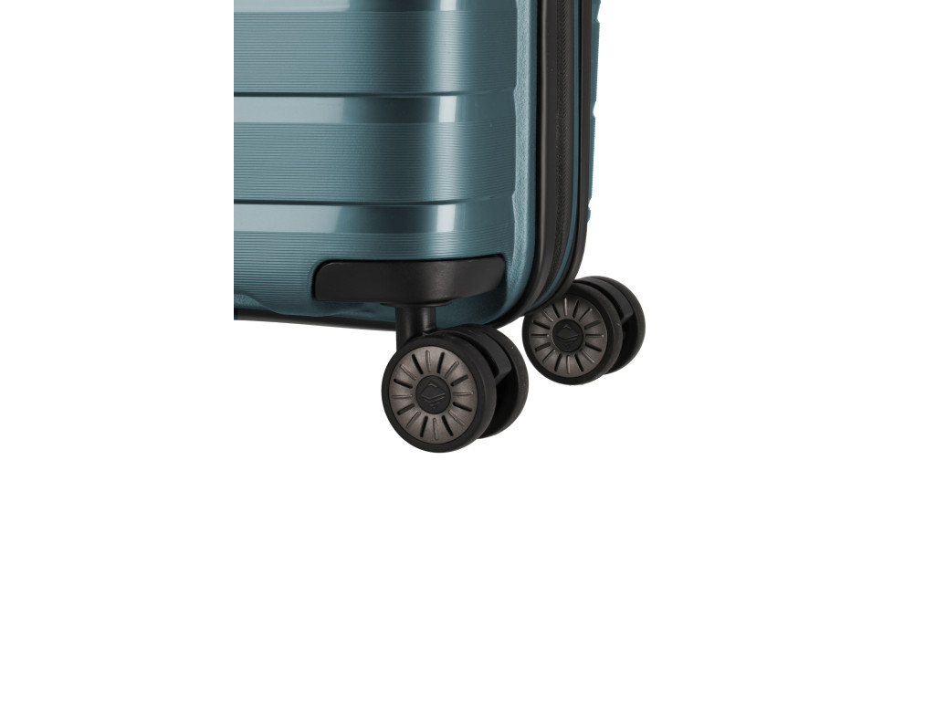 Ať už je cesta jakkoliv náročná, čtyři velká kola se postarají o to, aby kufr byl stabilní, snadno se ovládal a byl velmi tichý. Kufr má speciální vrstvu, která ho chrání před poškrábáním, a vypadá jako velmi luxusní zavazadlo.