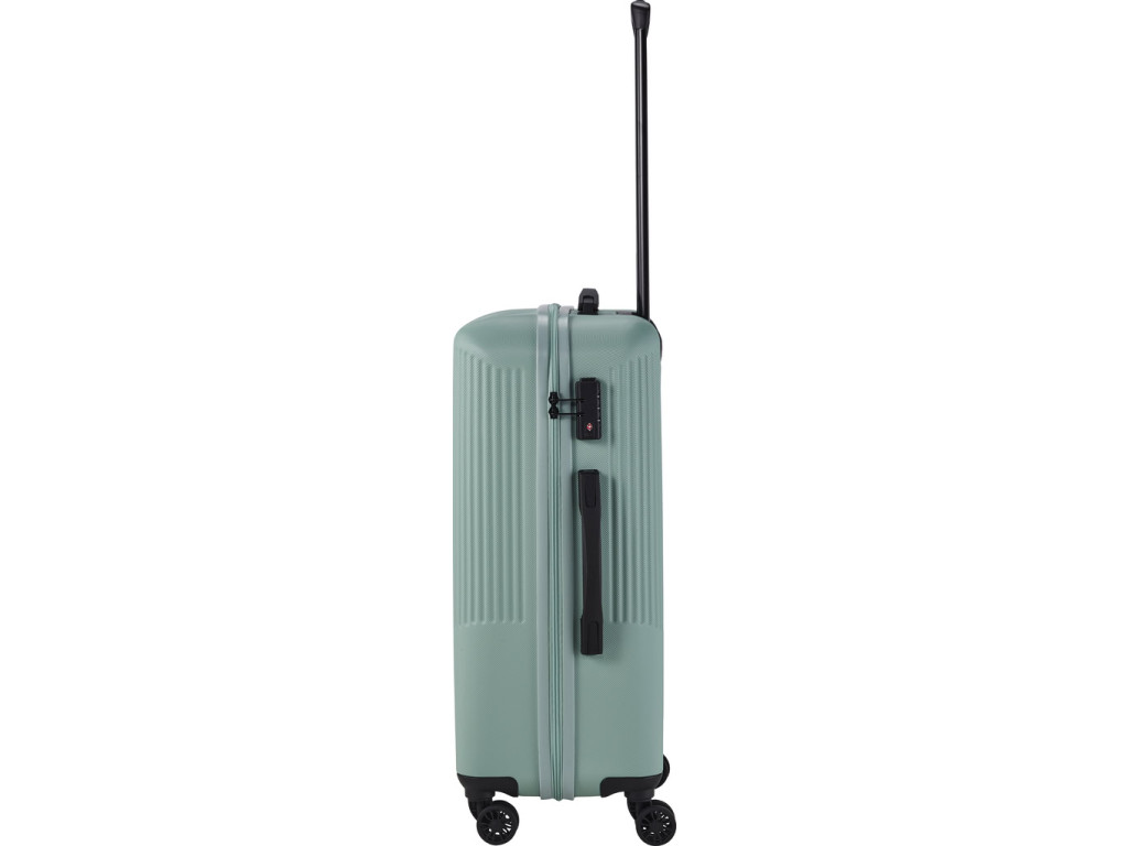 Čtyřkolečkový skořepinový kufr z robustního ABS plastu v trendy pastelové barvě vybavený integrovaným TSA zámkem.