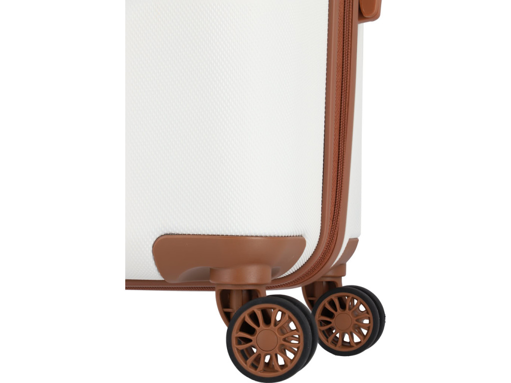 Jednoduše navržený interiér s látkovou příčkou a popruhy pomůže rychle a přehledně sbalit vše potřebné na delší cesty i kratší pobyt mimo domov. Skořepina z odolného tvrdého plastu s hrubým povrchem a integrovaný zámek ochrání uložené věci během přepravy. Čtyři kolečka usnadní jízdu v terénu i manipulaci s plně naloženým zavazadlem.