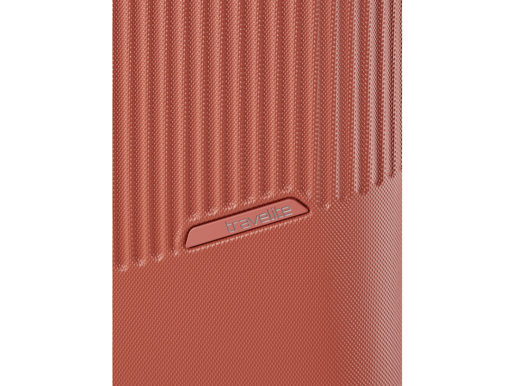 Jednoduše navržený interiér s látkovou příčkou a popruhy pomůže rychle a přehledně sbalit vše potřebné na delší cesty i kratší pobyt mimo domov. Skořepina z odolného tvrdého plastu s hrubým povrchem a integrovaný zámek ochrání uložené věci během přepravy. Čtyři kolečka usnadní jízdu v terénu i manipulaci s plně naloženým zavazadlem.