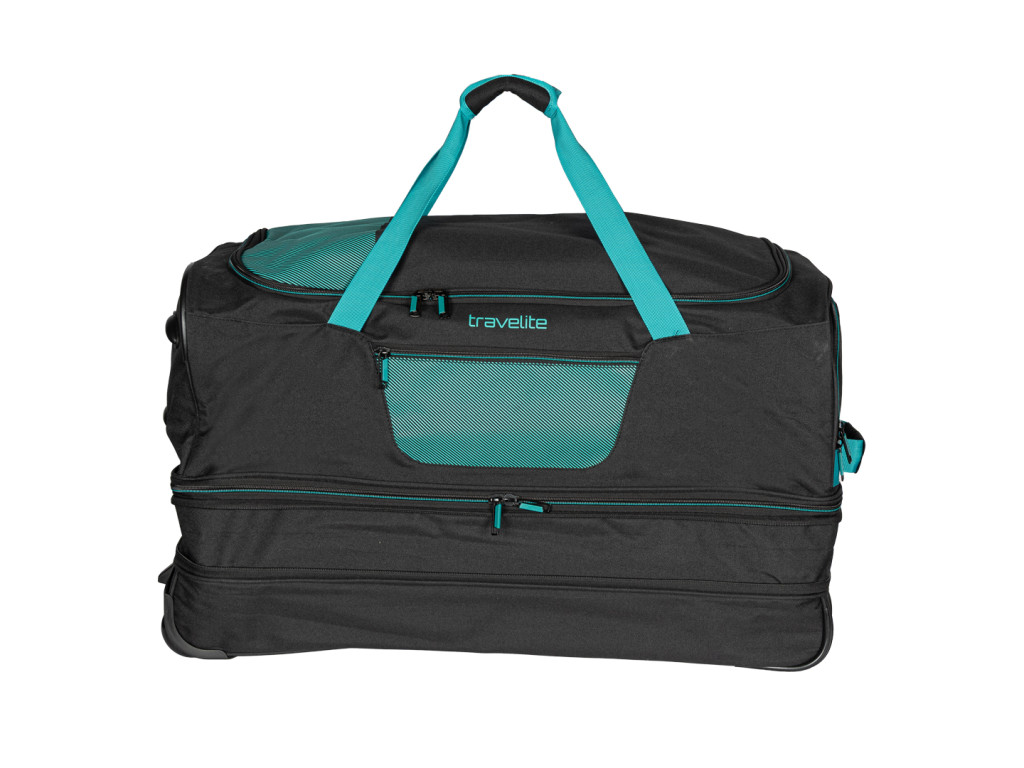 Travelite Basics Cestovní taška na kolečkách M 70 cm Černá/Modrá Rozšiřitelná