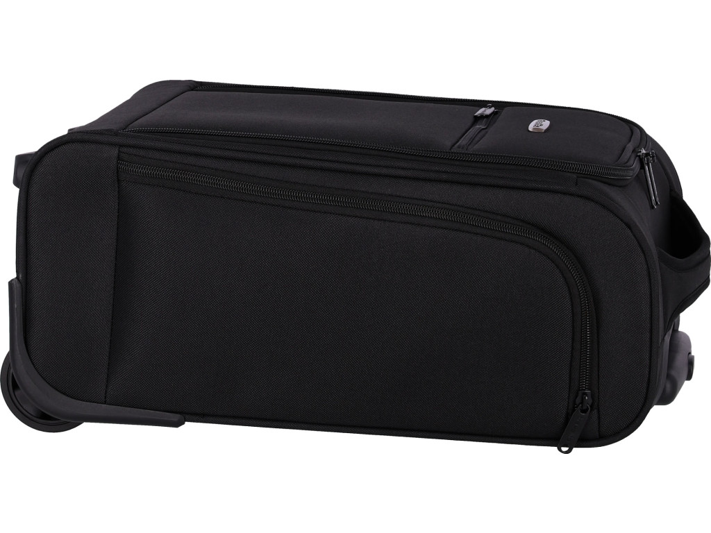 Kompaktní textilní kufr na dvou kolečkách, který splňuje normy pro palubní zavazadla většiny leteckých společností včetně Ryanair a Wizz Air.