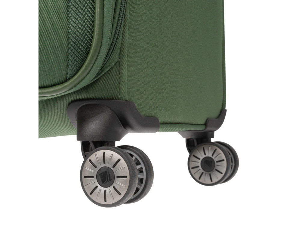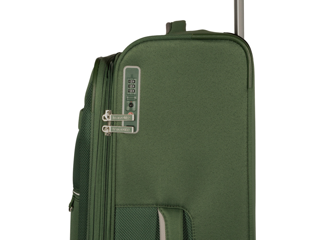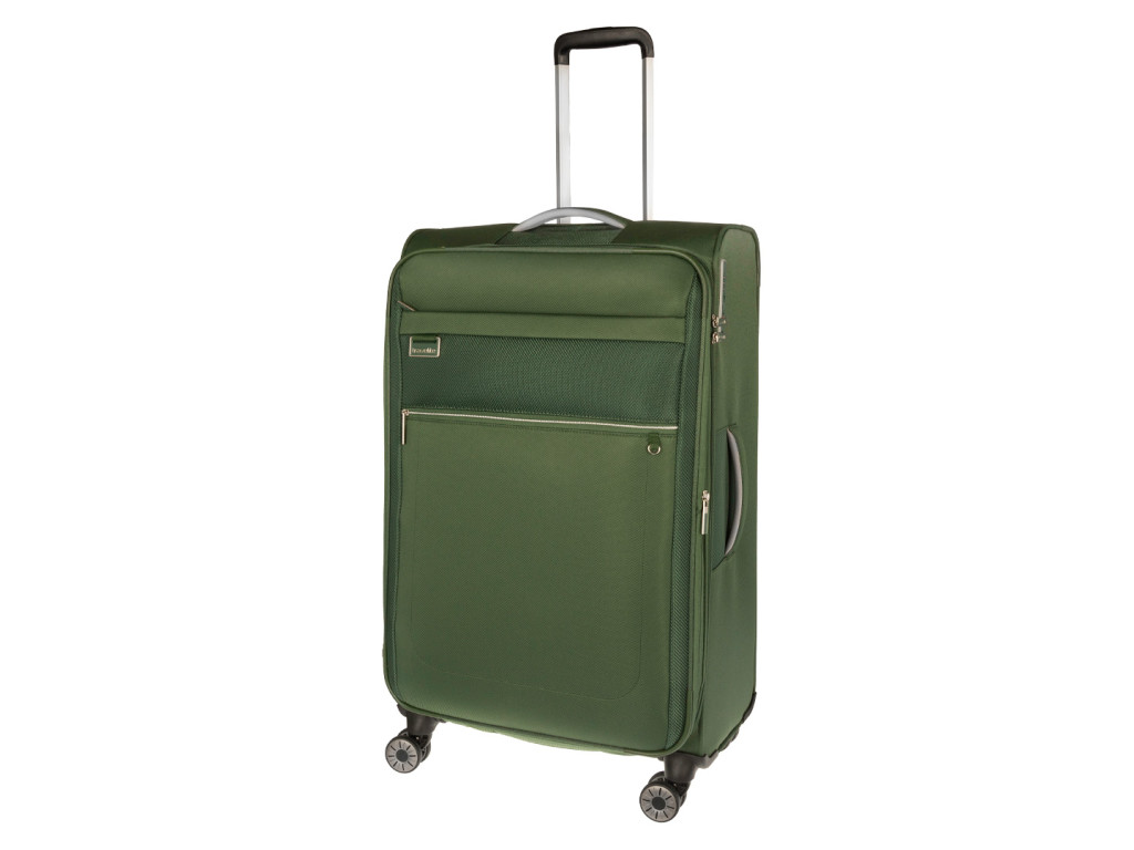 Elegantní čtyřkolečkový textilní kufr s integrovaným TSA zámkem a expandérem vyrobený z recyklovaného polyesteru.