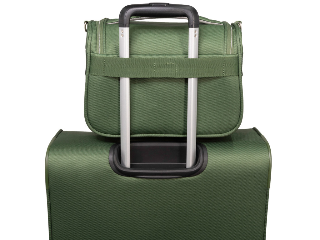 Kufřík lze při cestování nasunout na madlo cestovního kufru nebo pohodlně nést v ruce či na rameni.