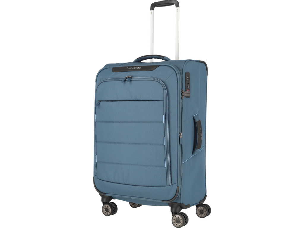Superlehký a prostorný kufr Travelite Skaii z udržitelného materiálu se postará o váš bezstarostný život na cestách i čistější životní prostředí. Recyklovaný polyester vyrobený z vláken recyklovaných plastových lahví (rPET) pomáhá šetřit suroviny a snižovat množství plastového odpadu. Díky promyšlenému funkčnímu interiéru s fixačními popruhy, oddílem na košile a dvěma kapsami na zip budete mít vždy dokonalý přehled o tom, co jste si kam sbalili. Přední kapsy pojmou cestovní doklady, mobil, nabíječku a další nezbytnosti, které si chcete nechat při ruce. TSA zámek usnadní kontrolu obsahu zavazadla při cestování mezi kontinenty. Kvalitní otočná kolečka, úchyt na dně, dvě pevná madla a odlehčená rukojeť zajistí pohodlnou manipulaci. Kufr je navíc vybaven expandérem pro navýšení objemu.