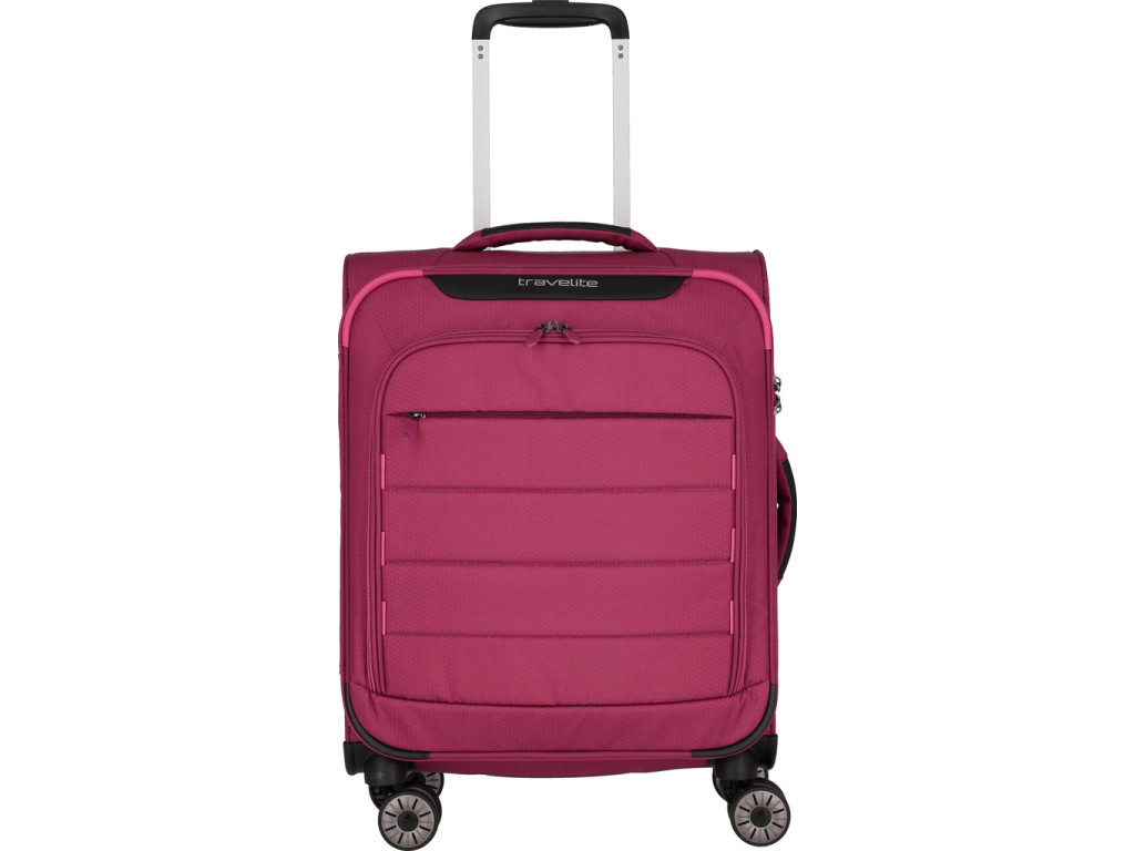 Superlehký příruční kufr Travelite Skaii z udržitelného materiálu se postará o váš bezstarostný život na cestách i čistější životní prostředí. Recyklovaný polyester vyrobený z vláken recyklovaných plastových lahví (rPET) pomáhá šetřit suroviny a snižovat množství plastového odpadu. Díky promyšlenému funkčnímu interiéru s fixačními popruhy, oddílem na košile a dvěma kapsami na zip budete mít vždy dokonalý přehled o tom, co jste si kam sbalili. Přední kapsy pojmou cestovní doklady, mobil, nabíječku a další nezbytnosti, které si chcete nechat při ruce. TSA zámek usnadní kontrolu obsahu zavazadla při cestování mezi kontinenty. Kvalitní otočná kolečka, úchyt na dně, dvě pevná madla a odlehčená rukojeť zajistí pohodlnou manipulaci.