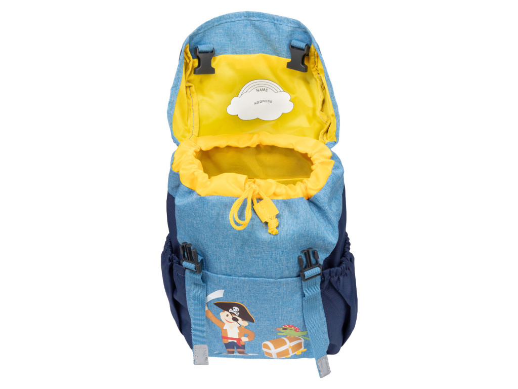 Praktický dětský batoh pro každodenní použití i pro cesty. Hlavní komora je vybavena stahovací šňůrkou a překrytá klopou se zapínáním na dvě přezky, což zajistí bezpečné uložení vašich věcí. Na bocích batohu se nachází dvě kapsy, které jsou ideální pro uschování láhve s vodou, deštníku nebo jiných drobností, které chcete mít po ruce. Pro snadné přenášení je na vrchu batohu umístěno pevné ucho.