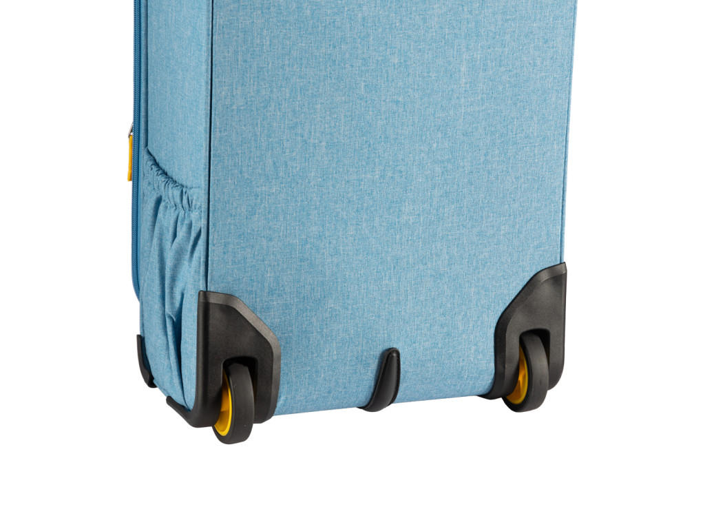 Interiér je vybaven fixačními popruhy a vnitřní kapsou na zip pro organizaci. Vysoce kvalitní zipy, zpevněné hrany a dvě nožky pro zvýšenou stabilitu zajišťují trvanlivost a spolehlivost. Materiál kufru je odolný melange tkaný ze dvou různě barevných vláken, což nabízí jak styl, tak odolnost. Toto zavazadlo splňuje předpisy pro palubní zavazadla většiny leteckých společností, což z něj činí ideálního cestovního společníka pro děti.